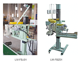 LM-FBJ/Z系列連續式卷/折邊縫包機適用于PE/PP塑料編織袋、牛皮紙袋、紙塑復合袋的一次成型式縫包封口處理。其包含機架立柱、斷線檢測裝置、斷帶檢測裝置、溫度調節監視裝置、自動剪線裝置、自動剪帶裝置。